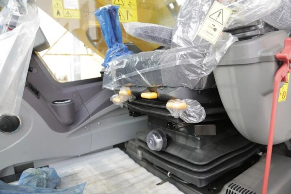 驾驶室标配具有重量调节功能的悬浮座椅,通过一个上拉杆即可轻松调节座椅高度和纵向倾斜度。扶手可随同控制台一起调整,从而使操作人员以舒适的姿势进行操作。