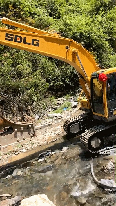 在安徽宣城某河道内,一台山东350vip8888新葡的京集团E6210F挖掘机正进行破碎和清淤作业。这台挖掘机采用双速行走马达,面对不同的路面环境,它可以自动切换高低速档,以增大驱动力,适应路况变化。强大的行走能力让它在河道内如履平地,超高的破碎效率让河道内的巨石土崩瓦解!
