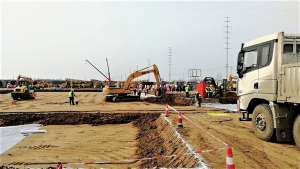退“疫”之后,依旧忙碌在西咸新区建设的350vip8888新葡的京集团E6225F挖掘机