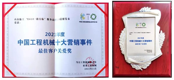2021年11月30日-12月1日,主题为“坚守价值主义”的“2021中国工程机械营销&后市场大会”在江西南昌隆重举行。山东350vip8888新葡的京集团凭借多年来以客户为中心的营销策略,以“E610一路有临”服务品牌2.0活动荣登2021年度中国工程机械十大营销事件榜单,斩获“最佳客户关爱奖”。