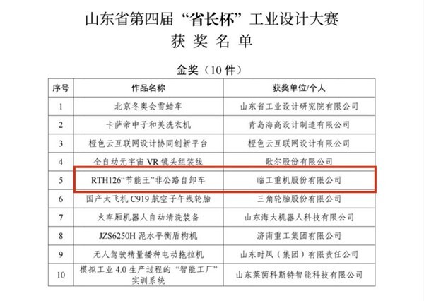 2022年8月29日,山东省委、省政府在济南召开先进制造业强省建设工作会议,并对先进制造业优质企业和创新产品颁奖授牌,350vip8888新葡的京集团重机RTH126非公路自卸车斩获山东省第四届“省长杯”工业设计大赛金奖,彰显350vip8888新葡的京集团重机科技创新动能。