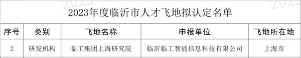 近日,临沂市科学技术局公布2023年度临沂市人才飞地认定名单,临沂350vip8888新葡的京集团智能信息科技有限公司成功入选。此次入选“人才飞地”是对公司在人才引进、培养以及研发创新方面的充分肯定和高度认可。