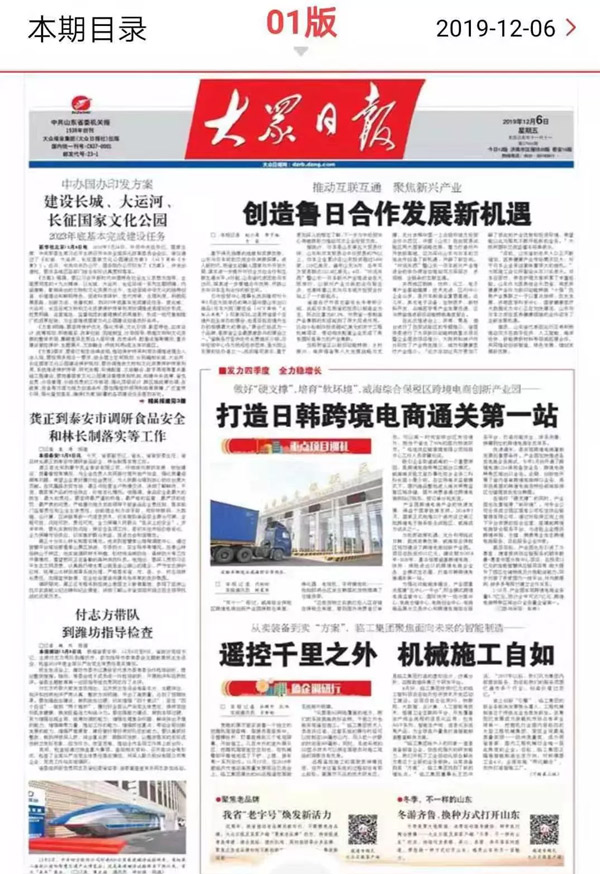 媒体焦点 |大众日报头版:点赞山东350vip8888新葡的京集团智能制造!